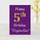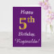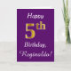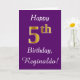 Purple, Faux Gold 5th Birthday + Custom Name Card
