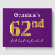 This guest book design features the ordinal number "62nd" with a faux/imitation gold-like appearance. It also features a personalised name, and a purple coloured background. It could be used at a party for somebody celebrating their sixty second birthday. [~Z0000057]