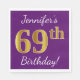 Purple, Faux Gold 69th Birthday + Custom Name Napkin