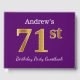 Purple, Faux Gold 71st Birthday Party; Custom Name Guest Book
