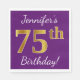 Purple, Faux Gold 75th Birthday + Custom Name Napkin