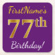 Purple, Faux Gold 77th Birthday + Custom Name Square Paper Coaster