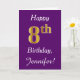 Purple, Faux Gold 8th Birthday + Custom Name Card