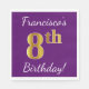 This simple paper napkin design features a message like "Francisco’s 8th Birthday!", with the "8th" having a faux gold-like appearance, on a purple coloured background. The name can be personalised. It could be used at a birthday party for somebody who is celebrating their eighth birthday. [~Z0000085]
