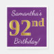 Purple, Faux Gold 92nd Birthday + Custom Name Napkin