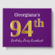 Purple, Faux Gold 94th Birthday Party; Custom Name Guest Book