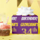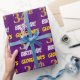 This wrapping paper design features a message like "GEORGIANA’S 34th BIRTHDAY!", with the "34th" having a faux/imitation gold-like colour appearance, and with the name and "BIRTHDAY" in a fun, bold font. The name can be customised, and the background is coloured purple. Wrapping paper like this could perhaps be used when wrapping birthday gifts being given to somebody in celebration of their thirty fourth birthday. [~Z0000206]