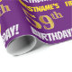 This wrapping paper design features a message like "FIRSTNAME’S 59th BIRTHDAY!", with the "59th" having a faux/imitation gold-like colour appearance, and with the name and "BIRTHDAY" in a fun, bold font. The name is customisable, and the background is coloured purple. Wrapping paper like this could perhaps be used when wrapping birthday gifts being given to somebody in celebration of their fifty ninth birthday. [~Z0000206]