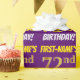 This wrapping paper design features a message like "FIRST-NAME’S 72nd BIRTHDAY!", with the "72nd" having a faux/imitation gold-like colour appearance, and with the name and "BIRTHDAY" in a fun, bold font. The name is customisable, and the background is coloured purple. Wrapping paper like this could perhaps be used when wrapping birthday gifts being given to somebody in celebration of their seventy second birthday. [~Z0000206]