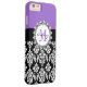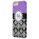 Purple Fleur de Lis Black Damask Monogrammed Case-Mate iPhone Case