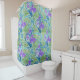 PURPLE FLEUR DE LIS ,GREEN LEAVES AQUA BLUE FLORAL SHOWER CURTAIN