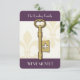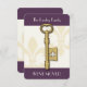Let everyone know where to find you with these moving announcements featuring a gold Fleur de Lis antique style skeleton key in an eggplant purple, off white and gold design.