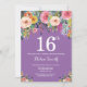 Purple Floral 16th Birthday Invitation