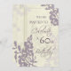 Sixtieth birthday party invitation cards in classic beige and subtle purple. Feminine and elegant with stylish floral pattern, fully customisable with your party details.