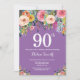 Purple Floral 90th Birthday Invitation
