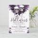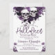A gorgeous purple floral halloween party invitation. This moody goth purple and black design features flowers and skulls. Easy to customise with your own halloween costume party, or halloween themed dinner party details.