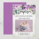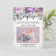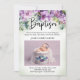 Elegant baby christening/baptism invitation for the baby girl. This invitation is framed with beautiful purple flowers and leaves. Personalised with your favourite newborn photo, your child's name, and baptism information. Contact me for assistance with your customisations or to request additional matching or coordinating Zazzle products for your event.