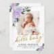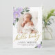 Lovely purple floral watercolor, photo birth announcement, and thank you card. Easy to personalise with your baby photos and details. Please get in touch with me via chat if you have questions about the artwork or need customisation. PLEASE NOTE: For assistance on orders, shipping, product information, etc., contact Zazzle Customer Care directly https://help.zazzle.com/hc/en-us/articles/221463567-How-Do-I-Contact-Zazzle-Customer-Support-.