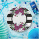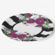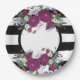 Purple Floral Black And White Stripes Flowers Paper Plate
