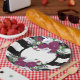 These cute floral plates features hand painted black and white stripes highlighting purple and white flowers.