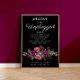 Purple and pink floral on black "Unplugged wedding" sign asking your guests to put away their cameras until the ceremony is finished.