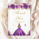 Purple Floral Blonde Hair Girl Birthday Party Thank You Card