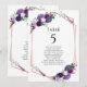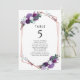 Plan your perfect and special wedding with precision, from save the date to day of the wedding events like reception and seating arrangements with these elegant purple floral rose gold geometric frame table number seating chart cards.