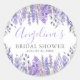Elegant Watercolor Lavender Floral Bridal Shower Round Sticker.