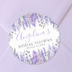 Add a whimsical and elegant touch to your party favours, candles, place settings, envelope closures, and more with this charming round sticker design! Featuring a soft lilac and lavender floral theme, the sticker showcases delicate watercolor lavender stems in various shades of purple, paired with soft green leaves. The text is displayed in a mix of classic serif and elegant script fonts in purple and grey, adding a refined yet charming touch to your bridal shower.