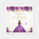 Purple Floral Brown Hair Princess Birthday Party Napkin