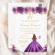This elegant and glamourous birthday party invitation features a beautiful princess with brown red hair and fair skin in a dark purple ball gown. The text combines handwritten script and modern sans serif fonts for a classy and sophisticated look. The floral arrangements, butterflies and gold confetti create the perfect blend of rustic and chic.