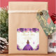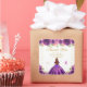 This elegant and glamourous birthday party thank you sticker features a beautiful princess with brown red hair and fair skin in a dark purple ball gown. The text combines handwritten script and modern sans serif fonts for a classy and sophisticated look. The floral arrangements, butterflies and gold confetti create the perfect blend of rustic and chic.