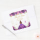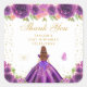 Purple Floral Brown Hair Princess Birthday Party Square Sticker