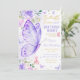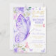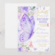 Purple Floral Butterfly Kisses and Birthday Wishes Invitation