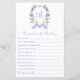 This adorable girl baby shower game sheet that says "Predictions for _____" would be perfect for your baby shower or sprinkle. It has a purple monogrammed watercolor crest surrounded by greenery and white roses, your bundle of joy's first initial and name, and a coordinating purple watercolor striped back. It's unique and precious and a wonderful way to let friends and family share their predictions about your soon-to-be-born baby girl.