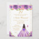 Purple Floral Dark Skin Princess Birthday Party Invitation