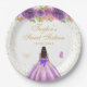 Purple Floral Dark Skin Princess Sweet Sixteen Paper Plate