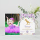 Purple Floral Dinosaur Birthday Girl T-Rex Photo Invitation