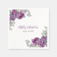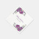 Personalised botanical wedding napkins with elegant handwritten script and purple floral bouquets. Design features the bride and groom names and wedding date with purple mauve and magenta rose flower blooms and grey green greenery. Please browse my store - plush purple floral collection - for matching items.