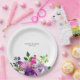 Design features purple watercolor flowers at the left bottom corner and white background. Easily customise with clicking button 'PERSONALIZE' that gives you the paper plate automatically for your purpose.