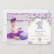 Purple Floral Elephant 1st Birthday Girl Photo Invitation