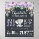 Purple Floral Elephant New Baby Girl Birth Stats Poster