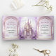 Purple Floral Fairytale Castle All in One Wedding Tri-Fold Invitation