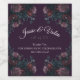 Elegant dark moody purple floral wedding design is lovely with maroon and mauve pink roses and greenery on a dark purple background for a rich bold autumn wedding look. The flowers adorn the corners for an elegant, modern and sophisticated look.