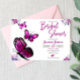 Purple Floral Flowers Butterfly Bridal Shower Invitation