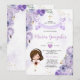 Purple Floral Girl First Holy Communion Gold Cross Invitation