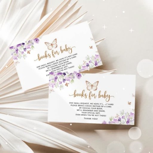 Purple floral gold Butterfly diaper raffle ticket Enclosure Card