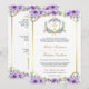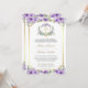 Purple Floral Gold Catholic Cross QR Code Wedding Invitation