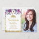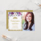 Purple Floral Gold Glitter Tiara Quinceanera Photo Invitation