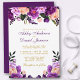 Watercolor Ultra Violet Purple Floral and Gold Wedding Invitation - Purple Back